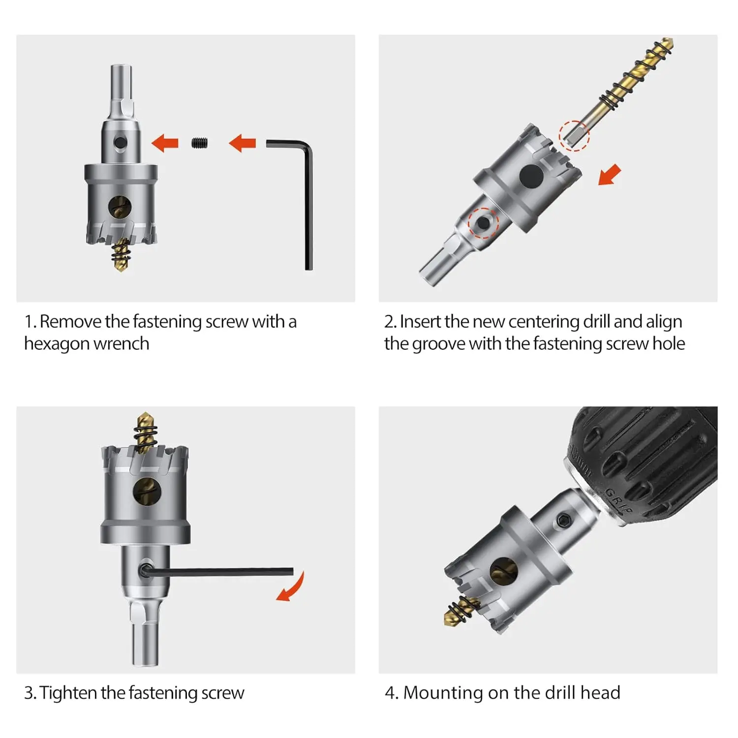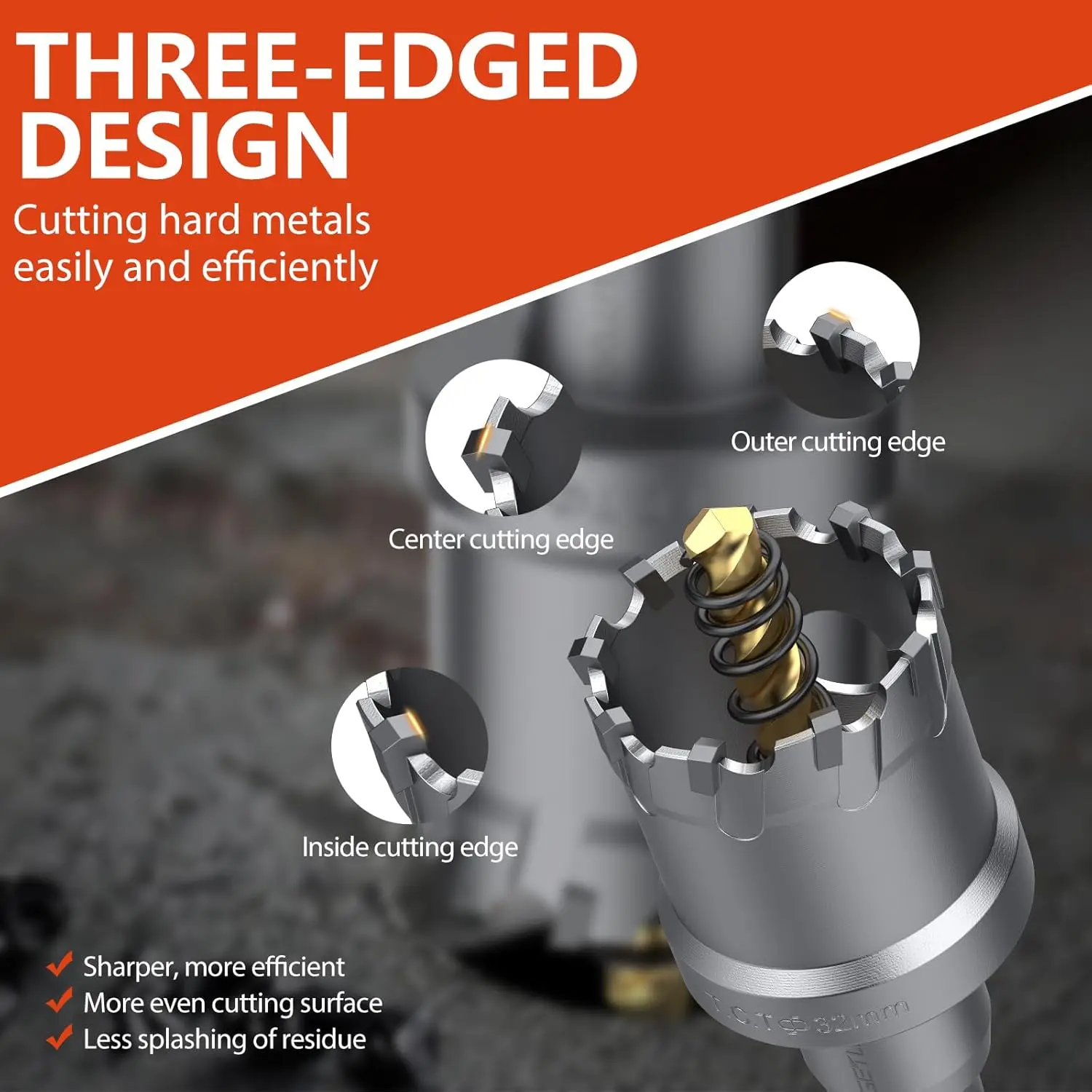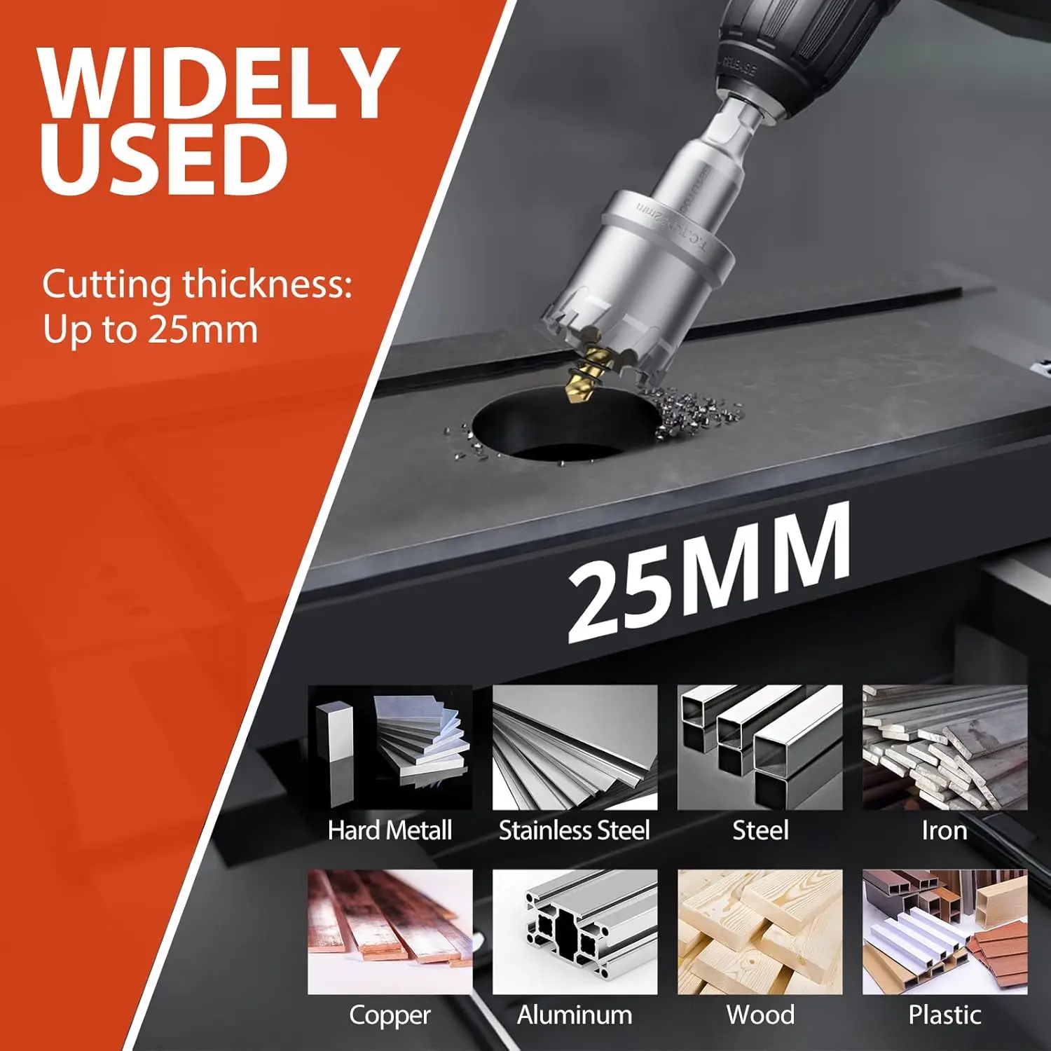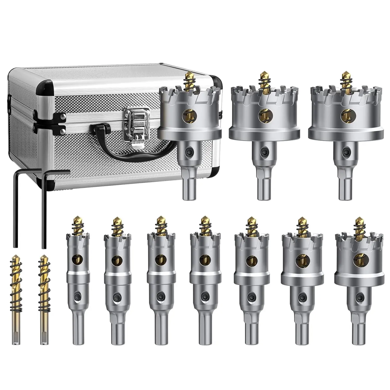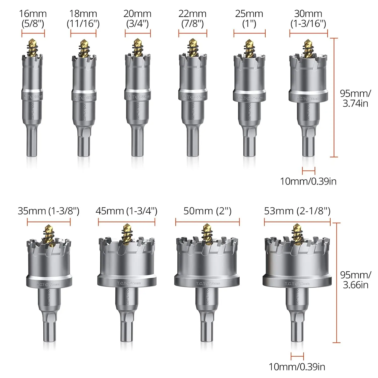 10Pcs TCT Hole Saw Set 16-53mm, Carbide for Metal/Plastic/Iron, w/Drill & Wrench