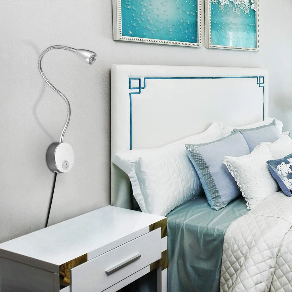360 Degree Rotation LED USB Flexible Gooseneck Tube Spotlight Indoor Bedroom Hotel Bedside Sconces Study Reading Wall Mounted Switch Night Lamp