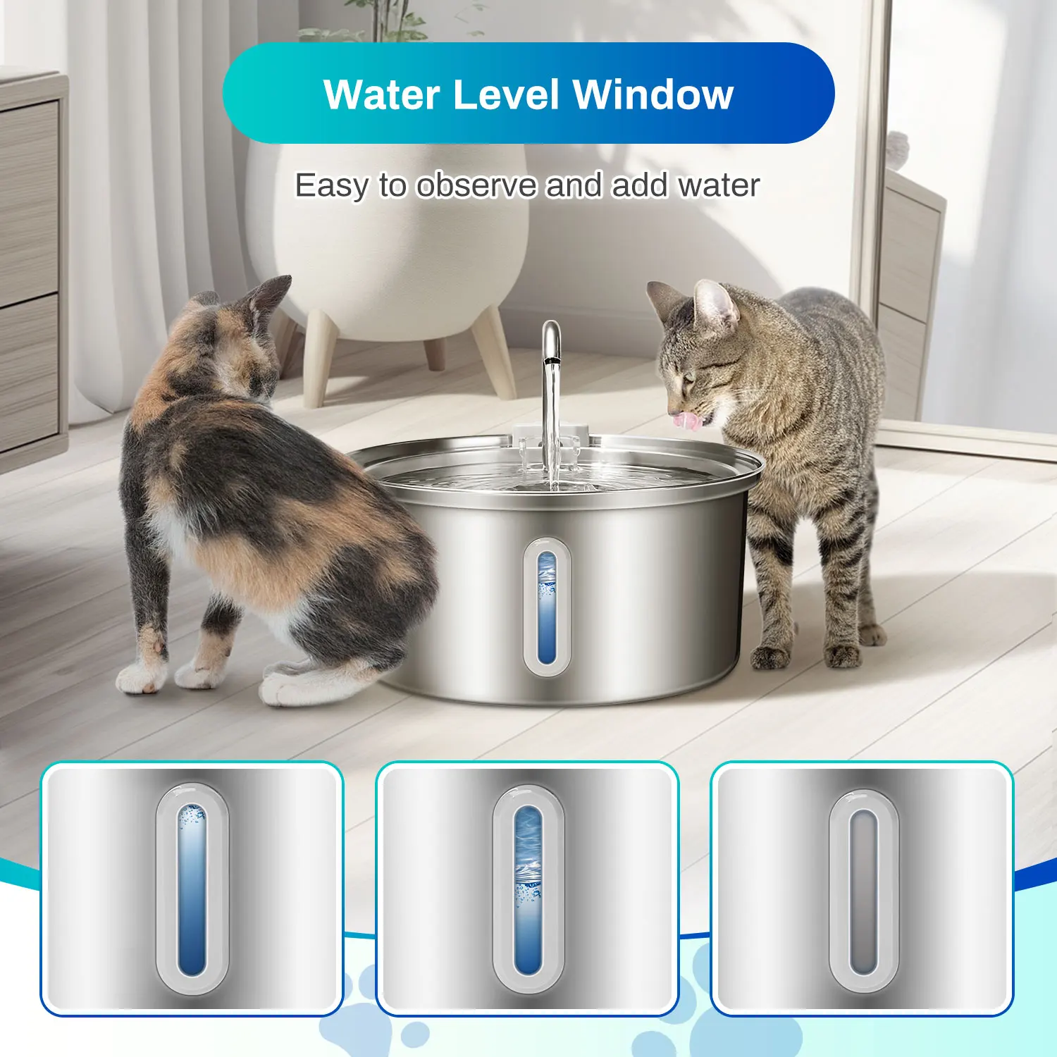 Crafted from 304 stainless steel, this cat water fountain is not only durable and corrosion-resistant but also a guarantee of health.