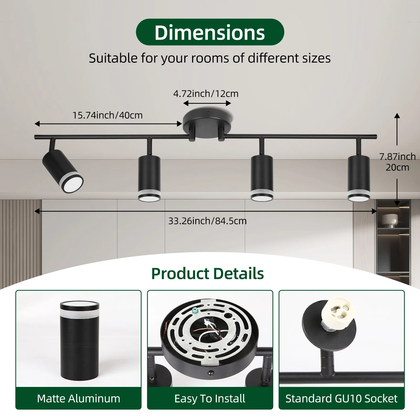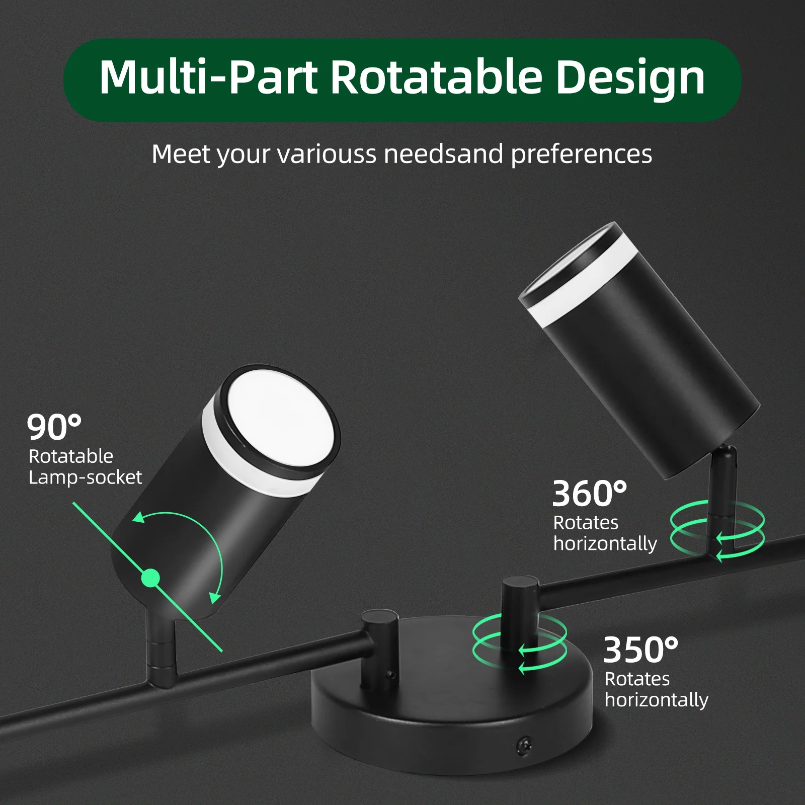 MODERN DESIGN: Designed with swing arms and pivoting track heads, tAdjust the swing track arms to the right position and swivel & angle the track heads to where you want to light up. The black finish brings a modern and unique feel to suit contemporary preferences.