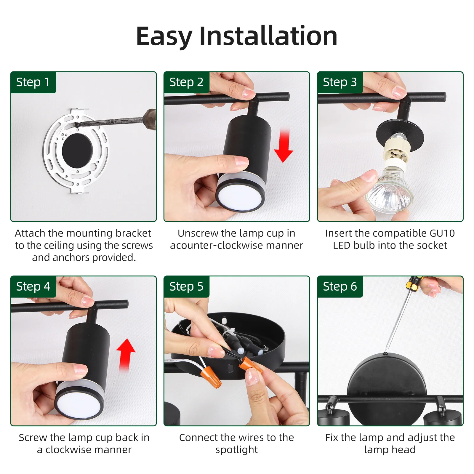 PROTECTIVE & DECORATIVE LAMP TRIM:4 light bulb and 6 light bulb trims are included in the ceiling track lighting kit to protect the GU10 base spotlight, meanwhile giving a uniform view and exquisite outlook for the track light fixture and the semi-exposed light bulbs. The trims can be used with or without since it’s removable.