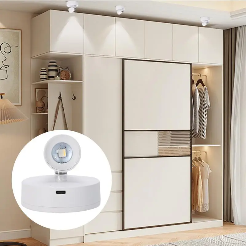 2.Easy to Install: This Rechargeable LED Spotlight allows for easy installation on any surfaces with two mounting options – double-sided tape for smooth surfaces and magnetic mounting for non-smooth surfaces. Choose the placement that works best for you