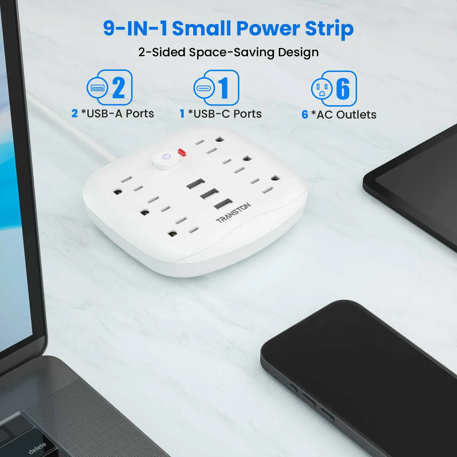 TRANSTON Power Outlet with Surge Protector, 6 power strip 3 USB Ports, 3.3ft Extension Cord, Fire Resistant, For Home and Offic