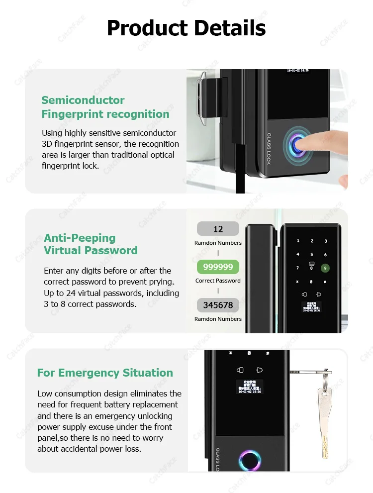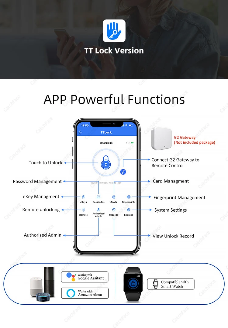 1. 5 ways to unlock: WiFi Access(optional), Bluetooth APP, Fingerprint Unlock, Card Unlock, PIN Code Unlock