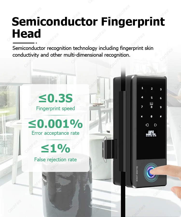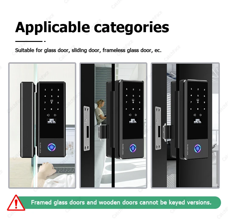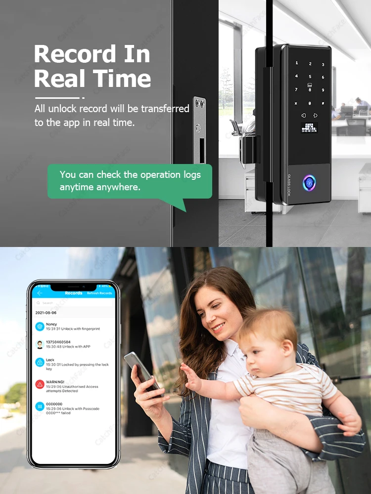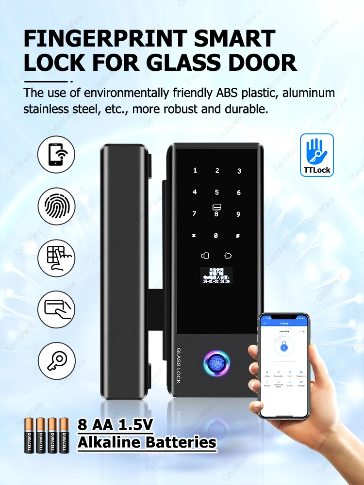 TTlock APP Fingerprint Smart lock WiFi remote control with IC card password for frameless glass door push or sliding door