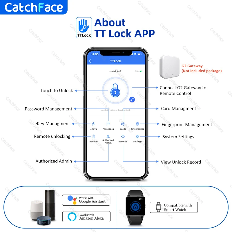1. 5 ways to unlock: WiFi Access(optional), Bluetooth APP, Fingerprint Unlock, Card Unlock, PIN Code Unlock