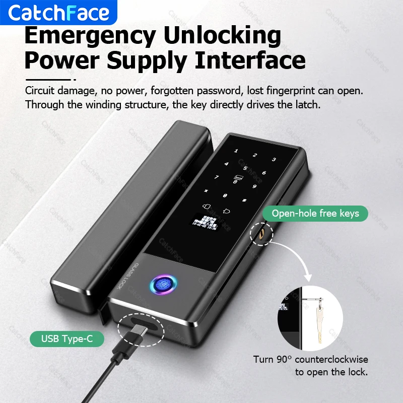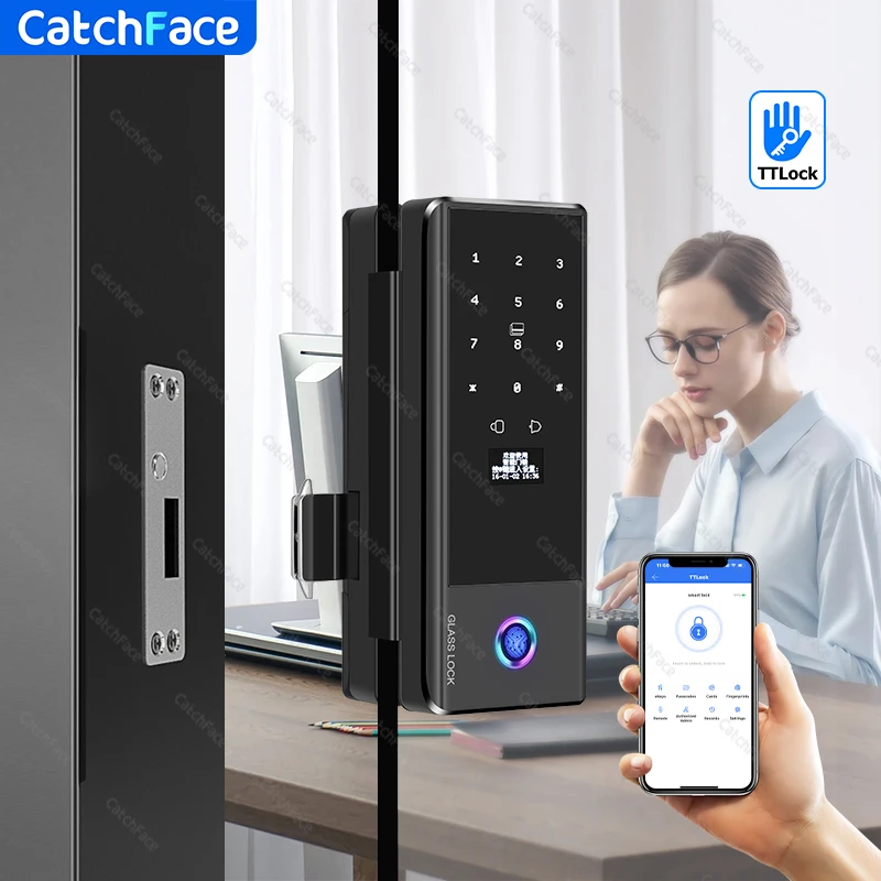 TTlock APP Fingerprint Smart lock WiFi remote control with IC card password for frameless glass door push or sliding door