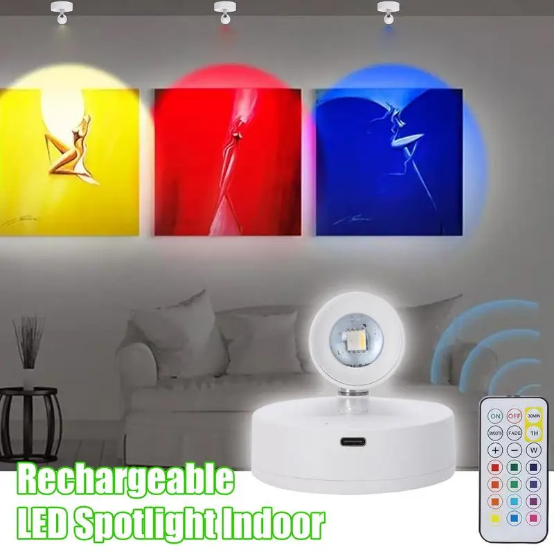 4.Rotating Design: Light up every corner of your space with our Rechargeable LED Spotlight. Easily adjust the light angle with the rotatable head, which can rotate 360 degrees and up and down by 90 degrees, giving you unique lighting angles without any effort