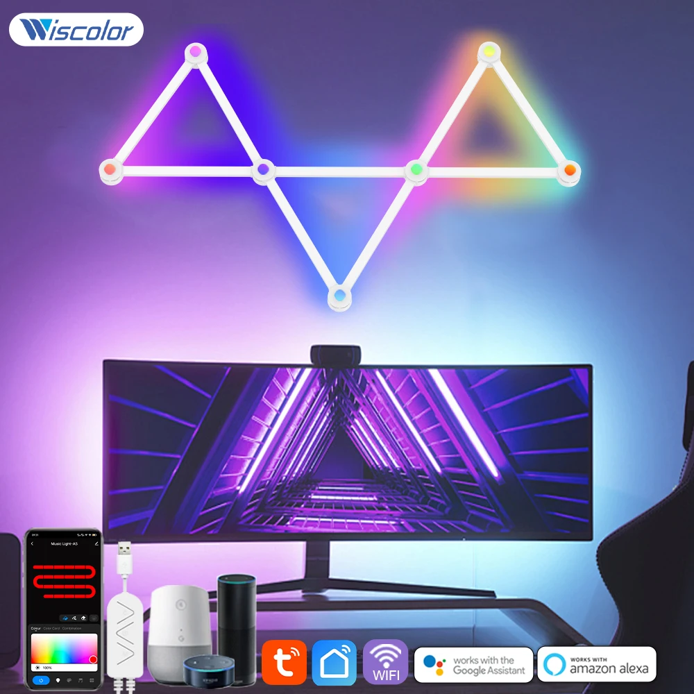 Wiscolor LED RGB Smart Wall Light DIY Atmosphere Night Light Game Room TV Backlight Decorative Wall Light Bar Music Rhythm APP